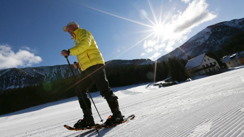 Wer sich lieber mit einem Guide in die magische Schneelandschaft begeben möchte, kann bei Deep Roots Adventures in Palfau eine geführte Schneeschuhwanderung buchen.